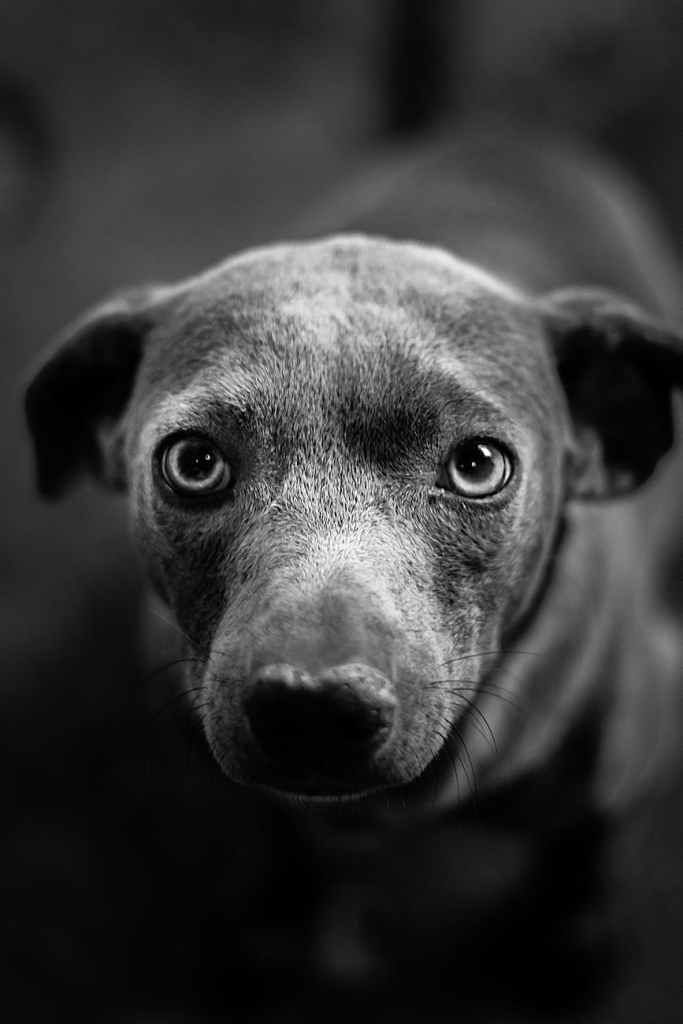 Talking to a homeless dog,